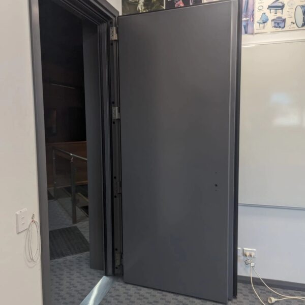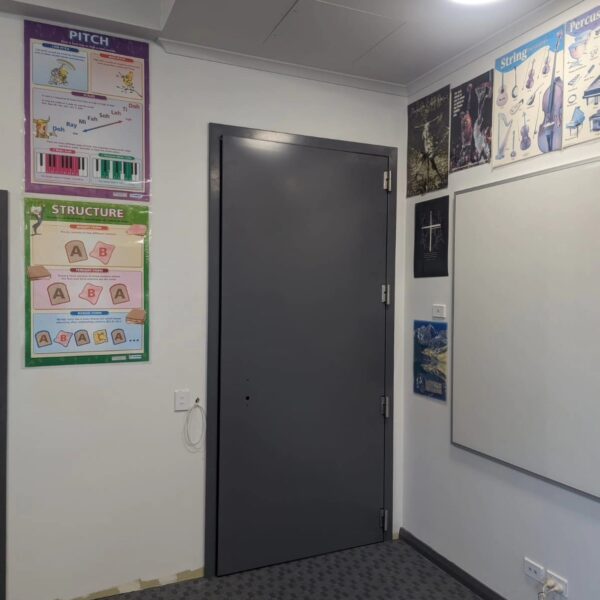 This project took place at a Christian college in Upper Swan. The school’s administration sought to upgrade the acoustic integrity of the main music room. To achieve this, they hired us to install two 300kg custom-made acoustic doors which were shipped over from Victoria. The doors were installed at either end of the music room to provide enhanced soundproofing and create an optimal environment for the music students to rehearse.