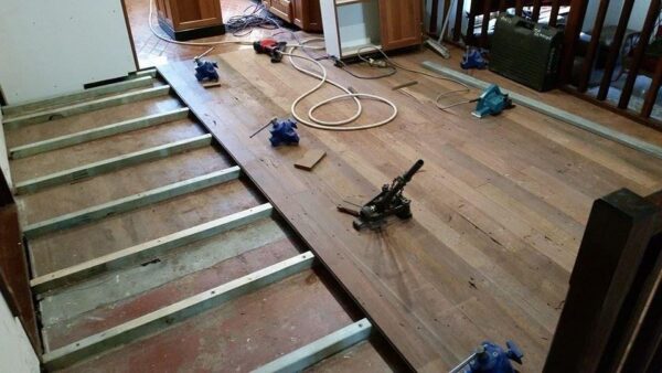 This was a residential project. The homeowner was experiencing a white ant (termite) infestation that severely damaged the floor’s structural framework. We were called in to restore the flooring by removing the compromised frame, installing a new, robust floor framework, and completing the restoration with high-quality jarrah floorboards.