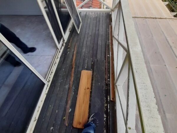 We began by carefully dismantling the rotted decking and balustrading. The area was then thoroughly inspected and prepared for the installation of new decking and balustrading. The new decking and balustrading were crafted from pine wood, chosen for its strength, affordability, and ease of installation.