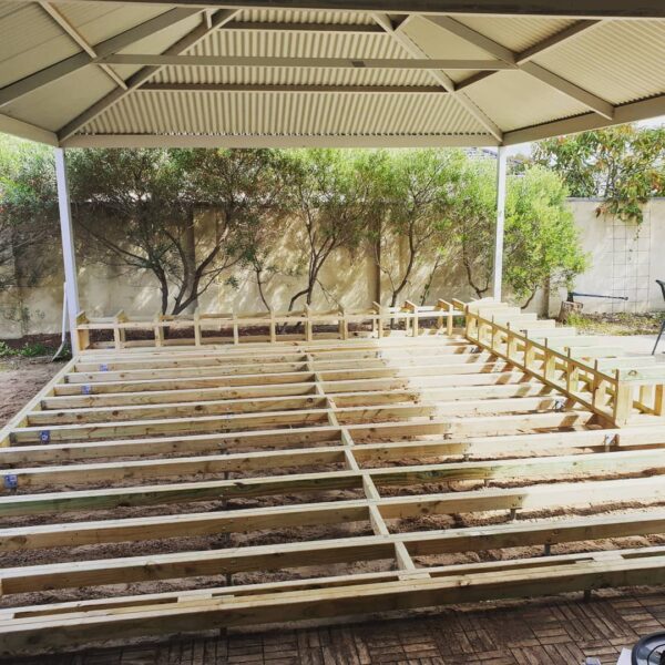 We began the project by constructing a subframe to support the new deck and bench seating. The subframe was constructed using treated timber. The timber framework provided a stable foundation for the deck and seating, ensuring that the structure would remain secure and level over time.