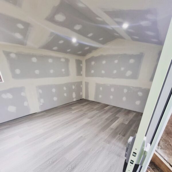 Once the framework had been complete, the team began to insulate the walls and ceiling to ensure the space would remain comfortable year-round. After the insulation was installed, the team lined the walls and ceiling, creating smooth, finished surfaces ready for paint.