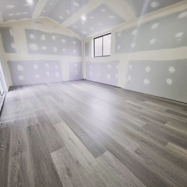 This project was undertaken in Kingsley. The homeowner commissioned us to convert their existing Colorbond shed into a comfortable and functional living space. The project involved framing the internal walls and raked ceiling with timber, installing timber stud walls, insulating the entire structure, and lining the walls and ceiling. To finish the conversion, the team installed vinyl plank flooring and a new glass sliding door.