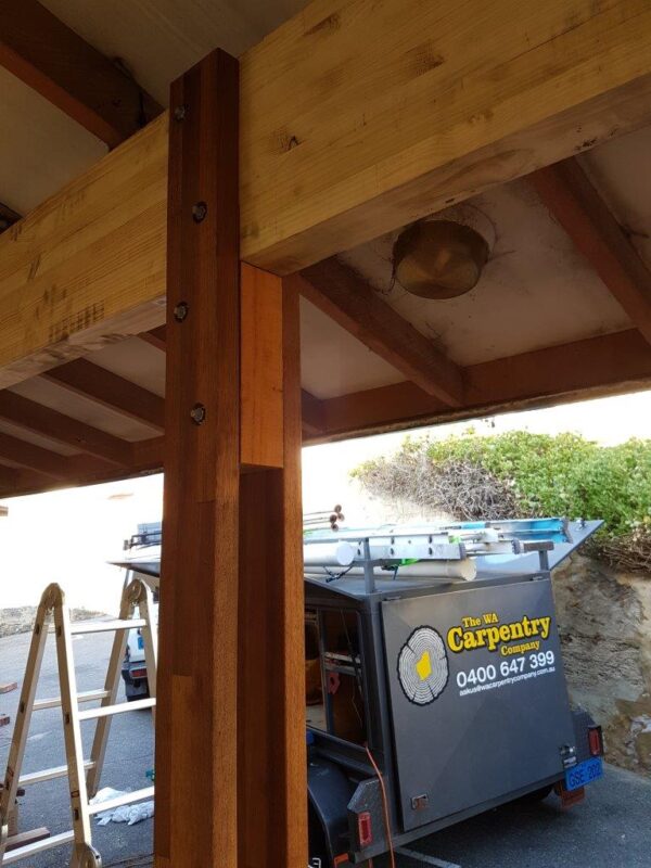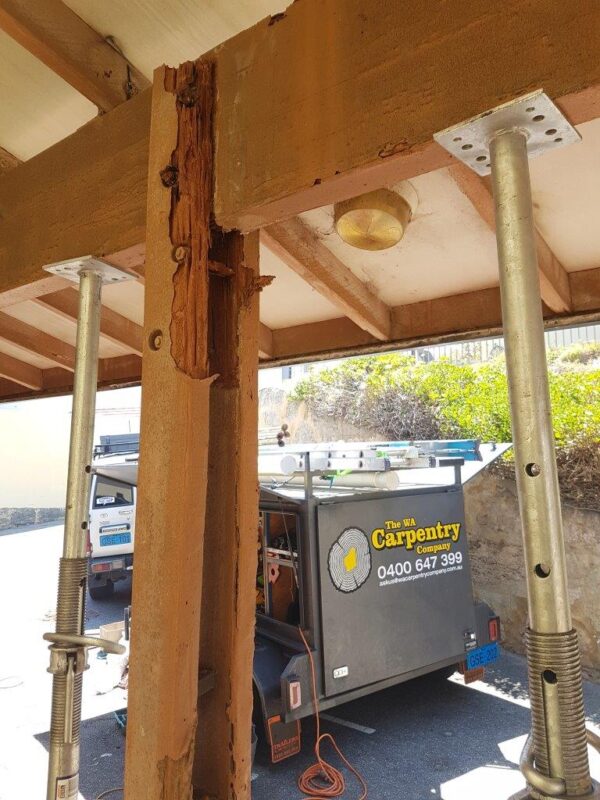 We began with a thorough inspection of the damaged post to assess the extent of the termite damage and wood rot. After ensuring that no further structural components were affected, the team carefully removed the compromised post, ensuring minimal disruption to the verandah.